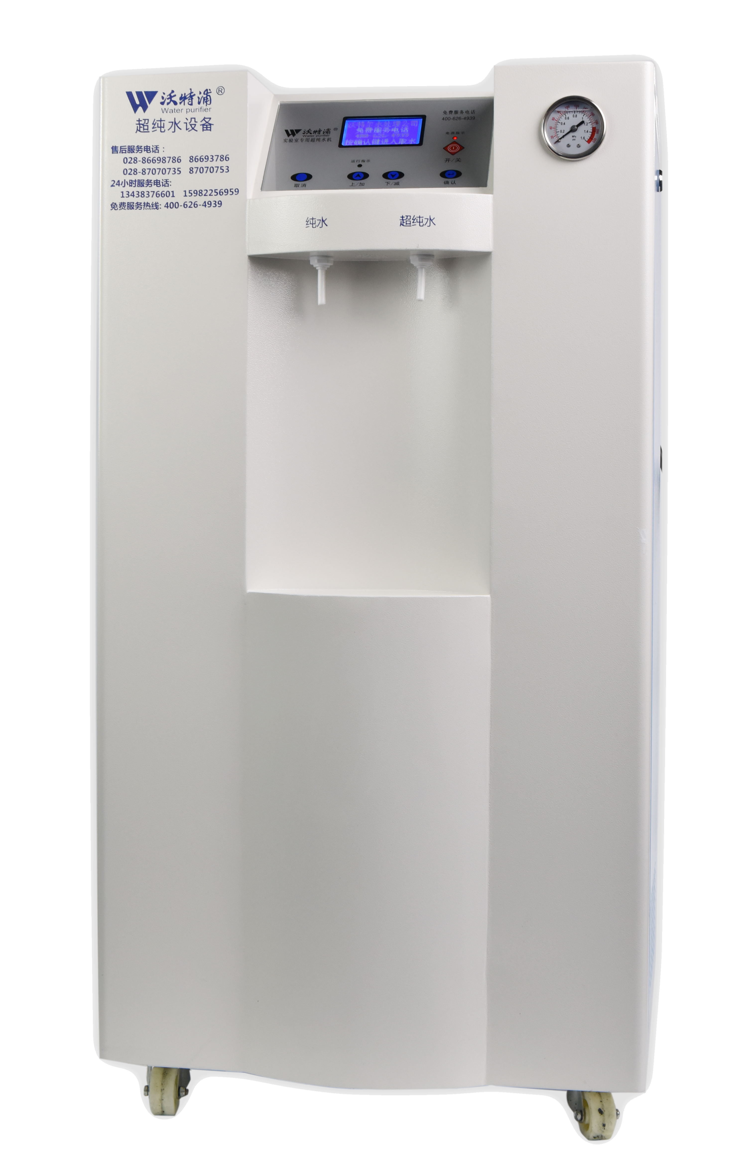 采用雙波長紫外消解系統,除熱源超濾膜組件,采用進口離子交換樹脂過濾,使超純水能滿足各種實驗要求。